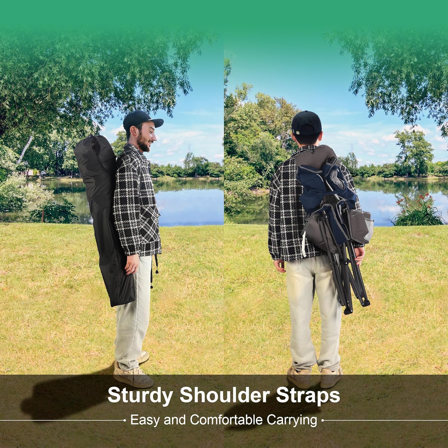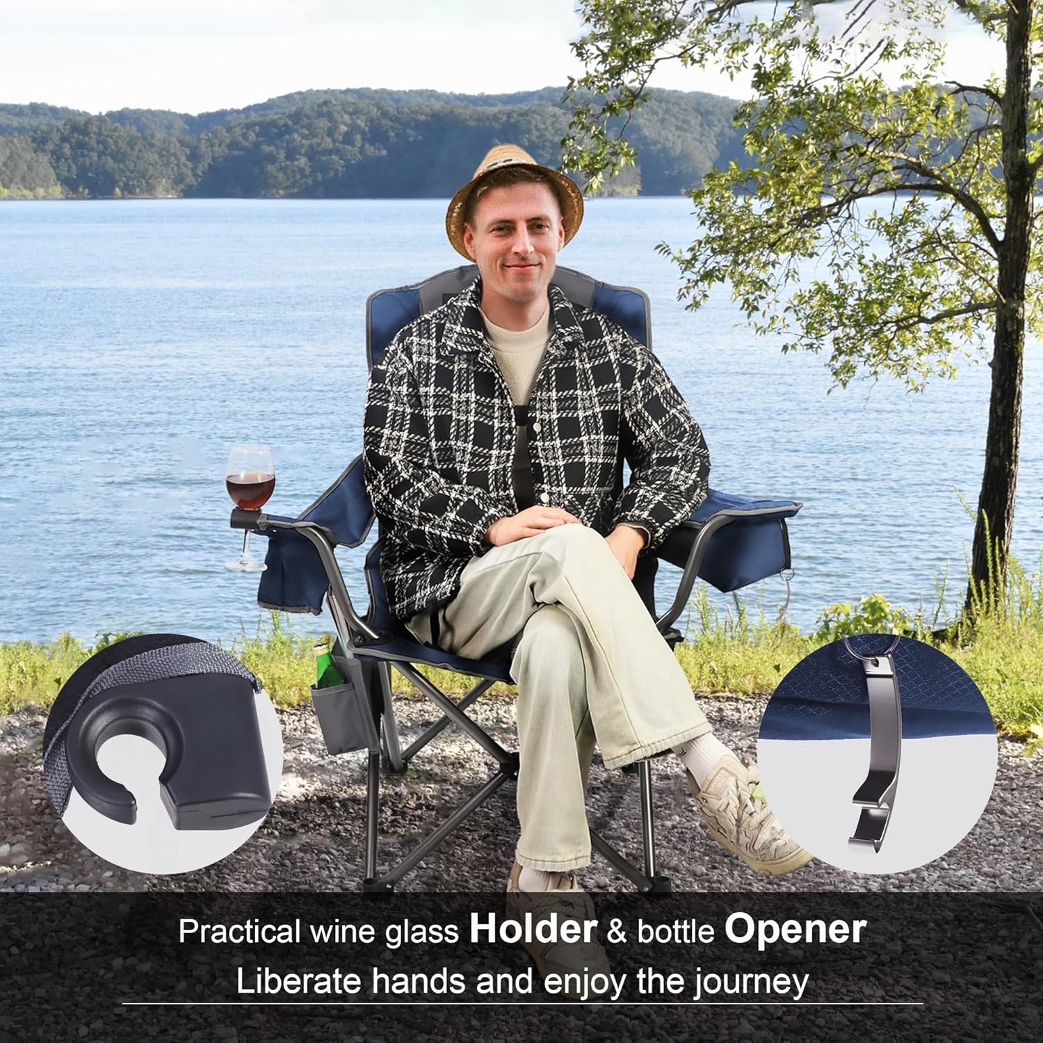Oversized Camping Chair, Full Padded Outdoor Folding Chair Support 350 LBS, Heavy Duty Lawn Chair w/Cup Holder, Cooler Bag, Shoulder Straps for Adult-Blue